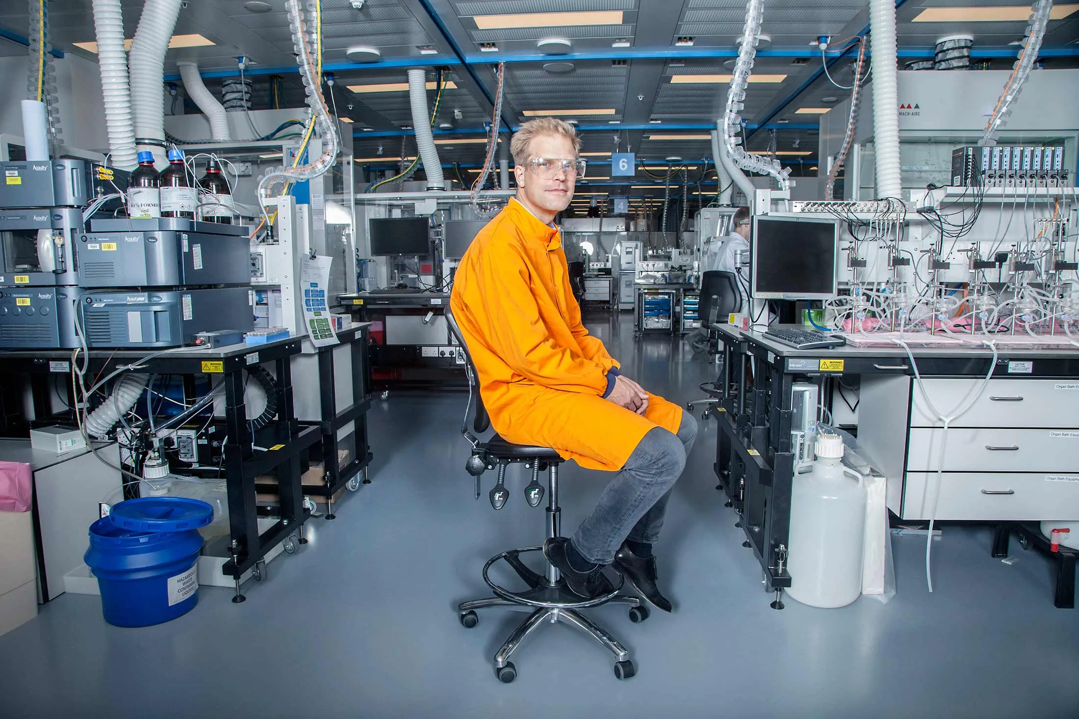分子工作是Famm在剑桥时最初接受的训练。但在那之前,他已经准备好要突破常规。小时候,Famm和他的兄弟(现在是H&M的高管)“有一百万个不同的俱乐部,只有他和我”,他说,专注于追踪动物或与邻居进行模拟战争。作为长子,Fredrik总是领导者,只有一个例外。他把发明俱乐部交给Kris负责。“在这个领域有一点前沿,”Famm谈到生物电子学时说。“但这正好合适。” —与艾伦·胡特合作