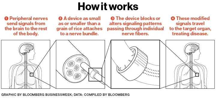 葛兰素史克和一小部分其他公司及研究机构设想的目标远更宏伟:微小设备可能像袖口一样包围一束神经纤维,布满更小的电极,类似于小轮子上的辐条。它们能够自主监测症状并相应调整电输出,或许可以伴随患者一生。