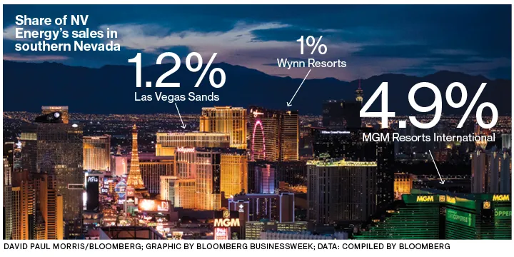 摄影师:大卫·保罗·莫里斯/彭博社三年前,当沃伦·巴菲特的伯克希尔·哈撒韦收购内华达州的主要公用事业公司NV Energy时,它继承了一个有利可图的客户群:拉斯维加斯大道上霓虹灯闪烁、空调凉爽的赌场酒店。现在,他们正处于一场代价高昂的分裂之中。受到其他地方更便宜、更清洁能源前景的吸引,拉斯维加斯大道上最大的两个电力用户,MGM度假国际和永利度假村,在五月告诉监管机构他们愿意支付数百万的费用以放弃NV Energy的服务。