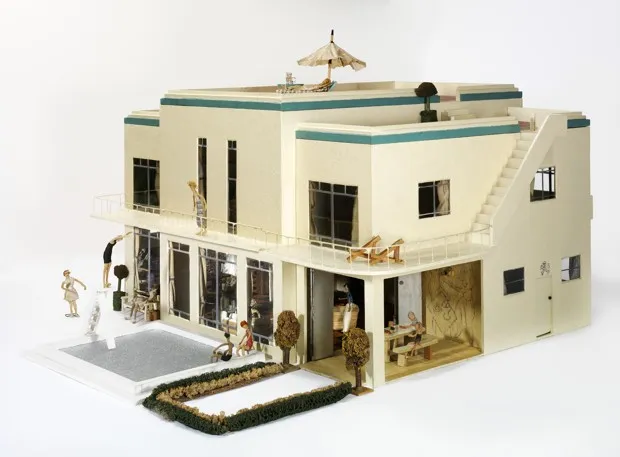 白女士之家是由莫雷·托马斯精确建造的玩具屋,他为其配备了缩小版的现代家具,以及生动多彩的画作,令人想起高更和马蒂斯的作品。这座奶油色的房子及其装饰反映了战间时期的生活气息。一辆活力四射的跑车、网球场和游泳池——泳客准备跳水——标志着这是一个欣赏休闲的人们的家,并且“出色地展示了现代社会习惯及其建筑表达,”根据博物馆1937年的年度报告。