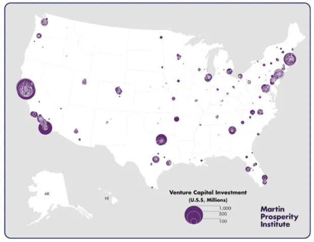 kropic1 / Shutterstock.com风险投资是高科技创新的驱动力,推动了从英特尔、苹果和基因泰克到推特、脸书和优步的革命性公司。但对初创公司的风险投资越来越集中在美国主要城市的少数城市社区。这是我与我的新报告共同撰写的主要结论,作者是我的马丁繁荣研究所同事凯伦·金。该报告标题为城市初创社区的崛起,利用汤森路透的详细数据,研究美国社区和五个领先高科技行业(软件、生物技术、媒体与娱乐、医疗设备和信息技术服务)中的风险投资微集群。