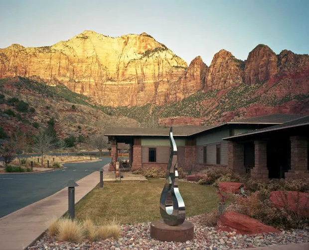 犹他州斯普林代尔的雕塑、图书馆和悬崖。由罗伯特·道森提供