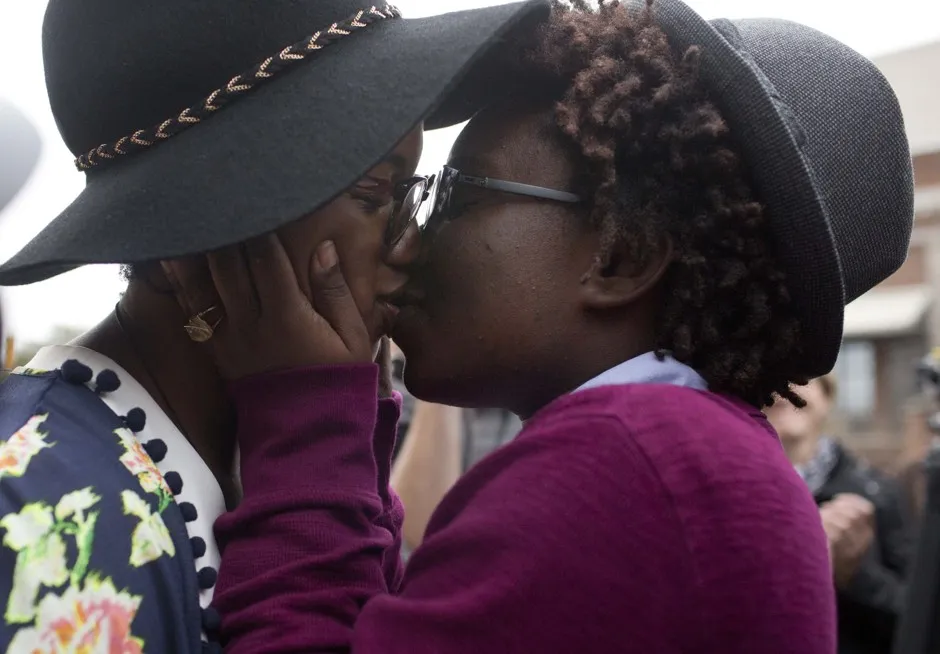托里·西森(Tori Sisson)左侧和香特·沃尔夫(Shanté Wolfe)右侧在阿拉巴马州蒙哥马利宣誓结婚后亲吻。美联社/布林·安德森总统巴拉克·奥巴马(Barack Obama)周四将石墙酒吧(Stonewall Inn)命名为 新的国家纪念碑,使其成为国家公园系统中LGBT平等运动的第一个文化标志。新的石墙国家纪念碑纪念的是 石墙暴动,发生在1969年6月28日——那一天,酷儿社区拒绝再被执法部门压制。
