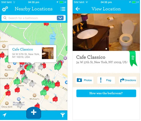 这个应用程序帮助解决在城市外出时的小危机——在紧急情况下找到最近的卫生间。它甚至有评论,有时还有照片。