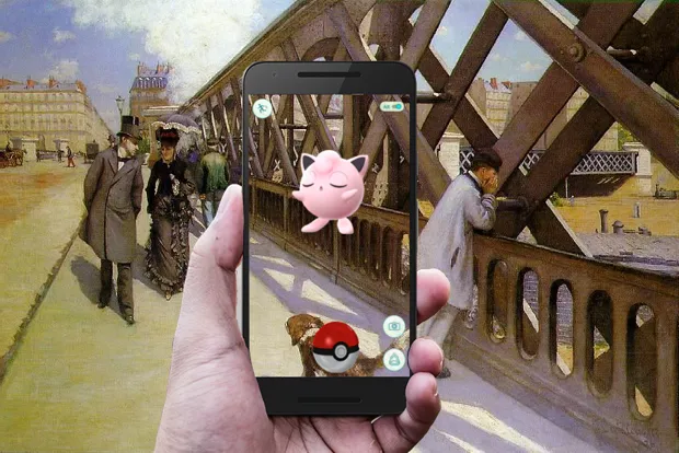 宝可梦Go/古斯塔夫·卡耶博特,“巴黎街道,雨天,”1877在增强现实智能手机应用 宝可梦Go中,玩家从家中出发,寻找虚拟宝可梦和与现实世界位置相关的各种游戏场所。自7月6日发布以来,估计有 750万次美国下载 ,这款游戏已成为真正的热潮。