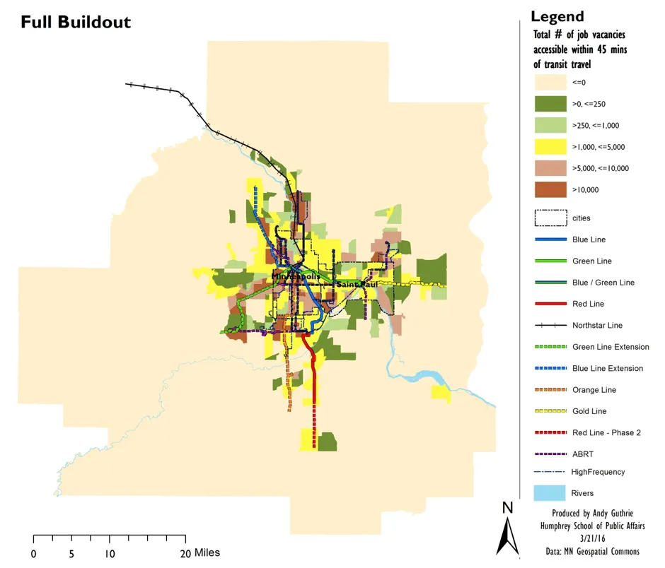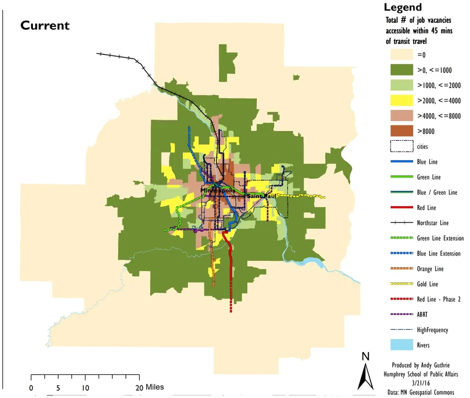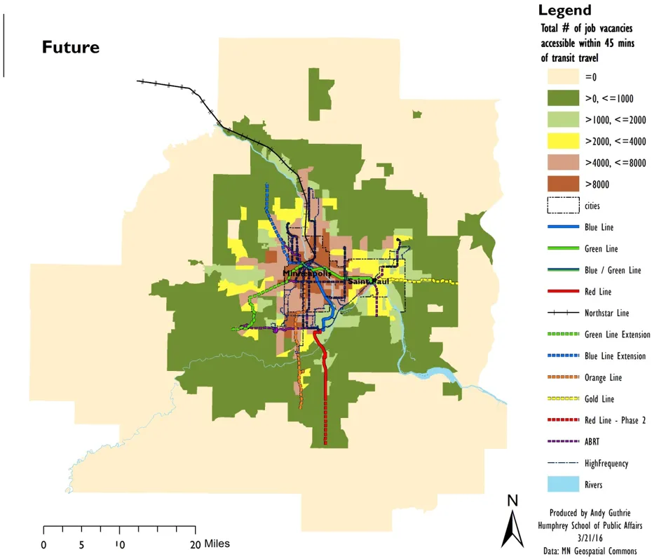 明尼苏达大学的一组研究人员,由 范英玲教授领导,深入研究了这一空间错配问题,在一份新报告中。他们使用GIS制图,直观展示了 最近提议的交通扩展对该地区的潜在影响。以下是他们的两个主要发现: