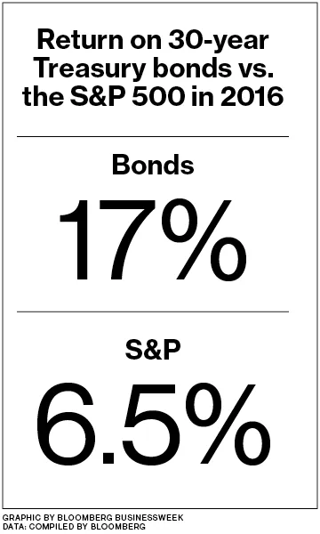 如果皮布尔斯听起来很焦虑,那是因为这个市场把他和他的同行带入了未知领域。当市场消化英国投票脱离欧盟的消息时,10年期国债的收益率在7月6日触及1.32%,这是自1792年以来的最低记录,随后回升至仍然较低的1.5%。对于初学者来说,收益率下降意味着债券在市场上获得了更高的价格。因此,“创纪录的低利率”头条掩盖了一个强劲的牛市:今年迄今为止,10年期国债价格上涨了近7%——对于传统上保守的投资来说并不算差——而30年期债券上涨了17%。总的来说,2016年美国政府债务为投资者带来了6600亿美元的意外之财。