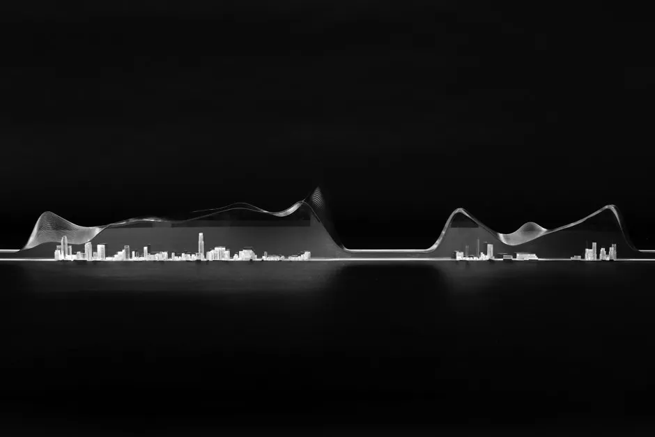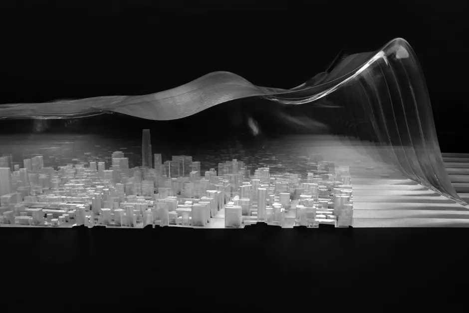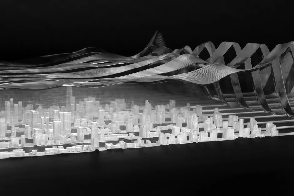 SITU工作室的这个模型中的丙烯带显示了下面物业的评估价值与销售价值之间的差异。“581节”由SITU工作室制作,摄影:帕特里克·曼德维尔SITU的模型展示了纽约的物业评估和物业价值是多么不协调。飞越城市的丙烯带显示了物业评估价值与其销售价值之间差异的大小。SITU创造了一个不平等的动态物理地图。
