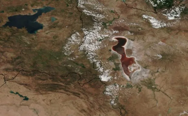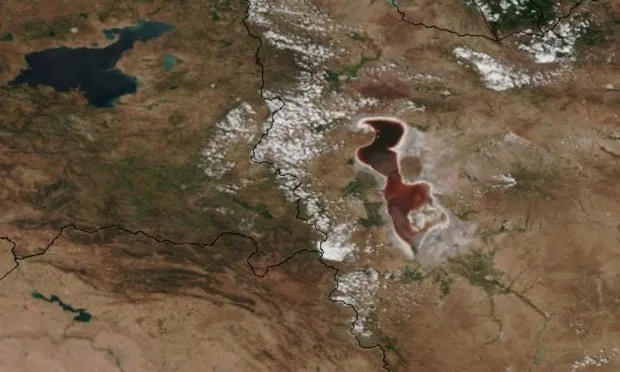伊朗的乌尔米湖因喜盐细菌而变成血红色 - 彭博社