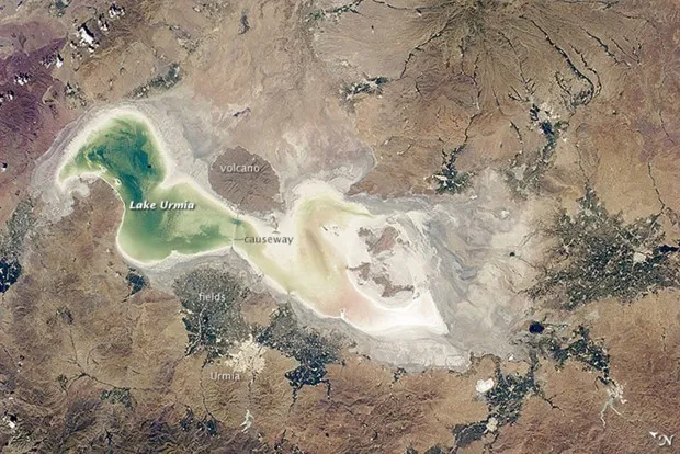 乌尔米湖到底发生了什么,号称是中东最大的湖泊?(由于最近的缩小,一些可能会对此表示质疑。)答案在微观层面上。国家海洋和大气管理局的环境可视化实验室解释道: