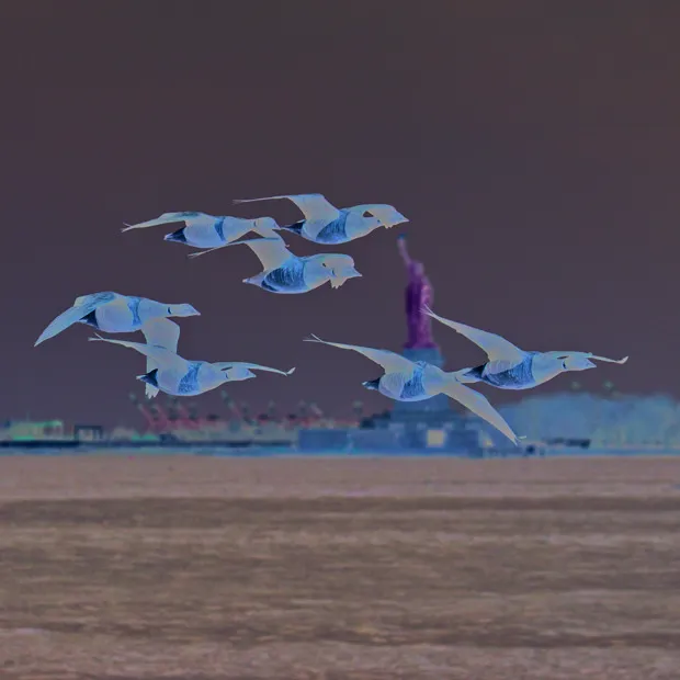 一群鸟围绕着自由女神像。希瑟·沃尔夫她将照片和观察记录整理成一本信息丰富的野外日记,在桥上观鸟($14.95,实验出版社)。在公园里,沃尔夫记录了130种鸟类,从椋鸟到黑鸟再到莺。她写道:“这怎么可能发生在布鲁克林-皇后区高速公路正下方的公园里?”
