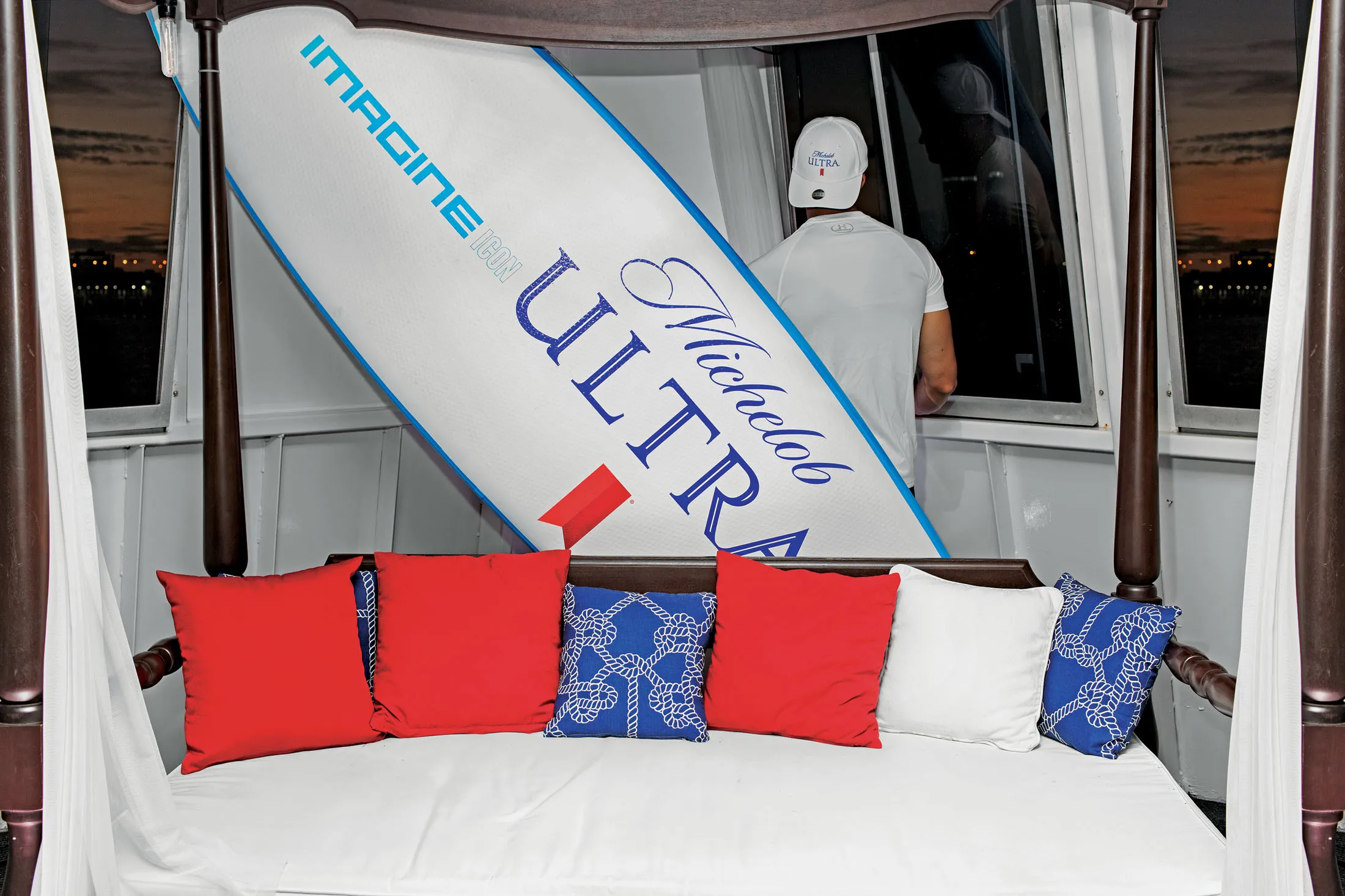 在游船上庆祝“活跃”的米克罗布超啤酒生活方式。