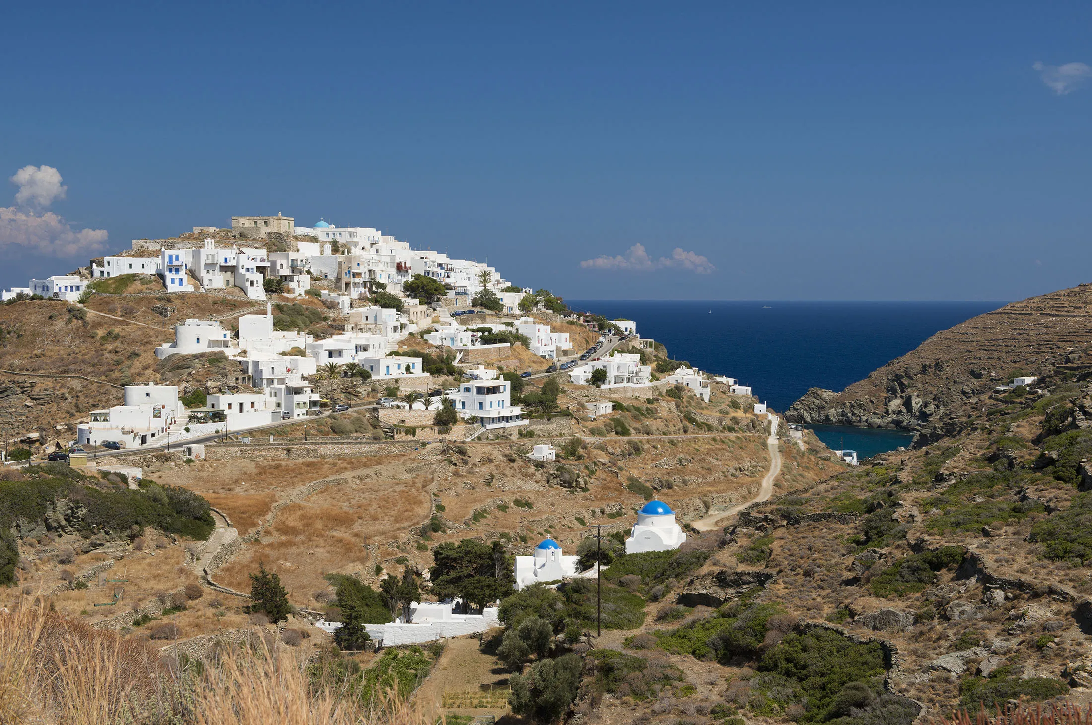 塞里福斯的霍拉镇。摄影师:图尔/盖蒂图片社/罗伯特·哈丁世界影像不过,准备充足的水、太阳霜和遮阳帽是去岛上主要徒步旅行的必备:从旧镇出发,经过一系列蜿蜒的小路,进行四小时的探险,最终到达那座像堡垒一样的白washed古老修道院——塔克西阿基斯。