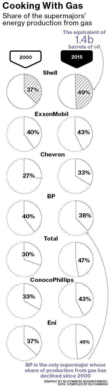 摄影师:Ben Stansall/法新社通过Getty Images范·贝尔登正在押注于像柯蒂斯岛这样的天然气项目,以应对所有石油巨头面临的核心挑战:如何在一个日益快速转向新型能源生产和消费的世界中生存。壳牌向天然气转型的一个关键因素是其540亿美元的收购BG集团。这笔交易于2月份完成,使公司获得了柯蒂斯岛、其他大型LNG工厂以及从美国到哈萨克斯坦的天然气田。它现在在全球LNG市场中占有20%的份额,数十艘巨型天然气油轮在海上巡航,生产能力是其最接近竞争对手埃克森美孚的两倍。