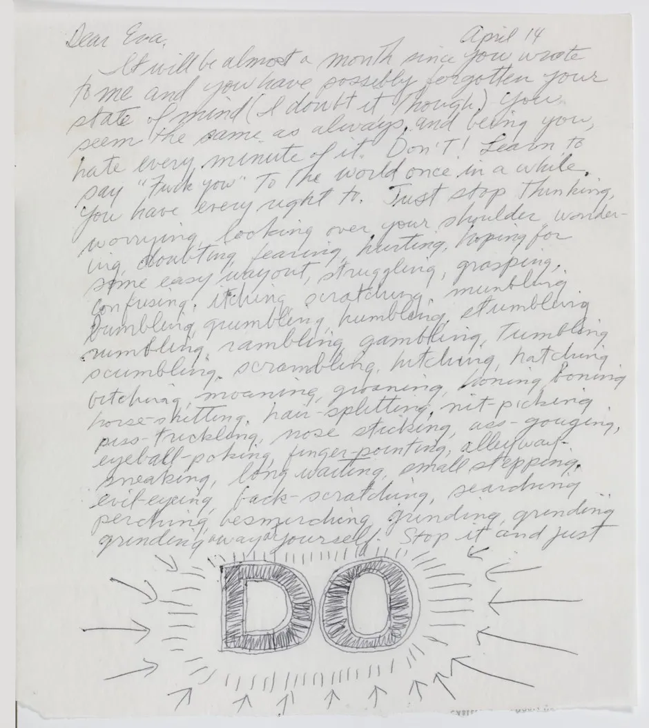 索尔·勒维特致埃娃·赫斯的信,日期为1965年4月14日。勒维特遗产/艺术家权利协会纽约已经不再是以前的样子。肉类包装区,高线的起点,惠特尼美国艺术博物馆去年开设了一座由伦佐·皮亚诺设计的新建筑, 几乎没有被划分 为适合这个正在转型的社区的任何 用途。勒维特和赫斯今天无法搬到那里,或者可能无法搬到曼哈顿的任何其他地方。