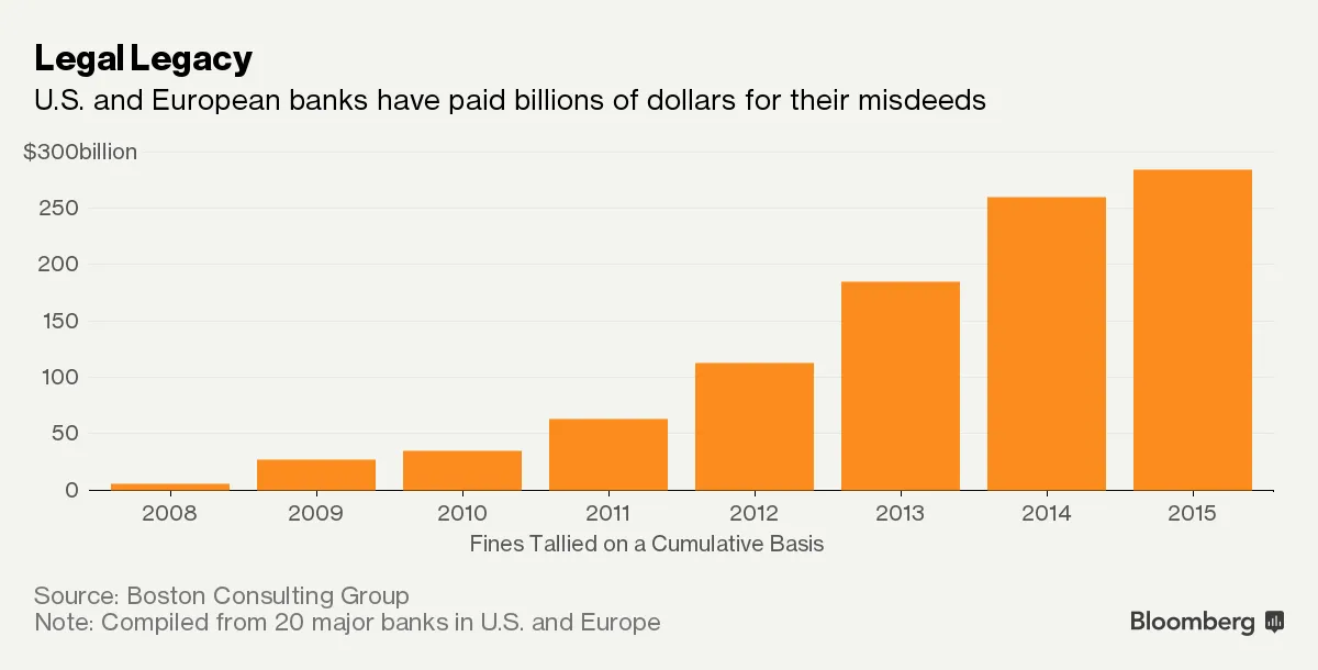 在一个以民粹主义反对贪婪资本主义为特征的时代,金融行业失去了活力。曾经庆祝自由市场无形之手的行业,曾经给股东和员工带来前所未有的财富,如今因过去八年中2840亿美元的罚款而受到惩戒。虽然华尔街长期以来以创新的温床自豪,但今天它却陷入了一张规则的网络中,以防止银行再次威胁全球经济。盈利能力和薪酬正在下降,2008年金融危机释放的力量正在产生影响。