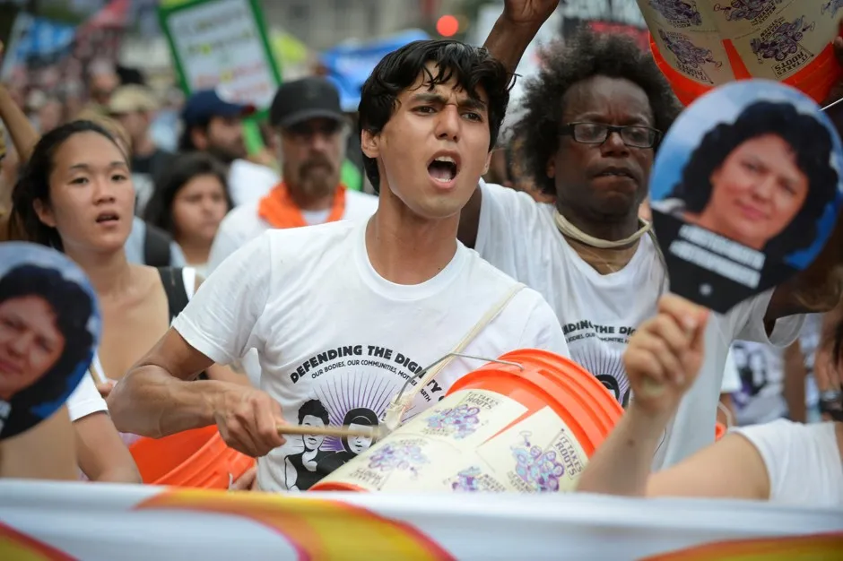 这个车队 包括 贝尔塔·卡塞雷斯的女儿,她是一位洪都拉斯土著权利活动家 她在三月的可疑谋杀引发了国际愤怒。在她去世的两年前,卡塞雷斯 曾指责克林顿支持2009年政变后成立的新洪都拉斯政府(现在 因侵犯人权而臭名昭著)。“在洪都拉斯,贝尔塔·卡塞雷斯正在保护受到水电大坝和其他企业项目威胁的神圣场所……”参与从克利夫兰到费城游行的土著环境网络律师*阿尔贝托·萨尔达曼多说。“昨天我们在费城受到了曼西部落的欢迎。他们也在为保护自己的土地而斗争,以阻止国家夺取他们的水……这正是贝尔塔·卡塞雷斯所斗争的问题。”“民主党需要明确的一件事是,不要把拉丁裔和黑人选民视为理所当然,”组织人民车队的草根全球正义联盟国家协调员辛迪·维斯纳*说。“我们看到她选择副总统时在玩得很安全,而不是关注真正社区的关切。所以……这就是我们在这里的原因,以便她不再继续向右倾斜。”