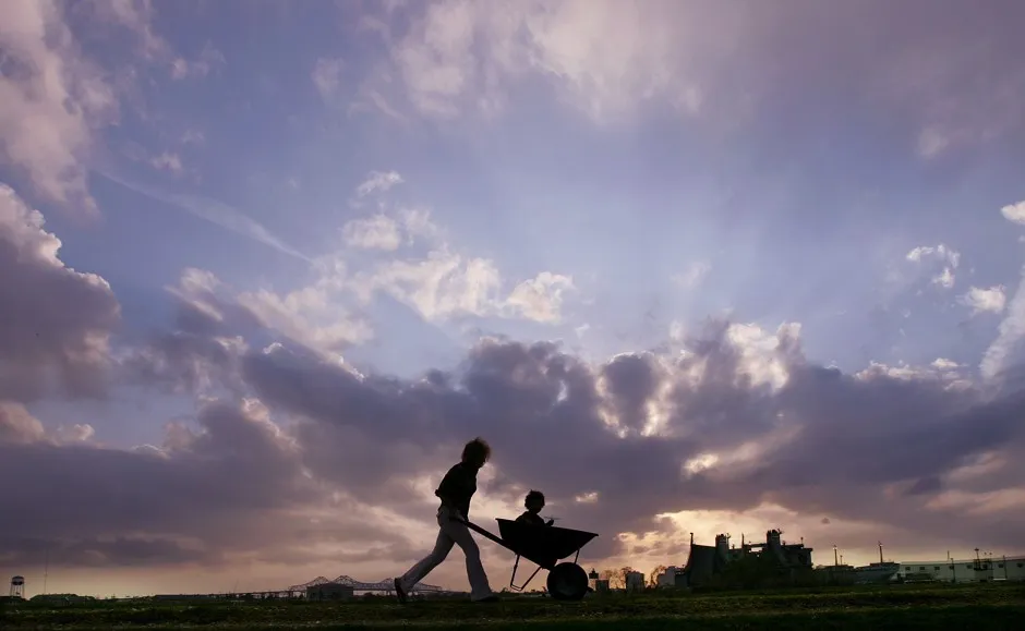 一位女性在新奥尔良下九区的工业运河堤岸上推着一个孩子的独轮车。路透社/香农·斯塔普尔顿卡特里娜飓风以每小时127英里的风速冲入新奥尔良——这是一个主要的三级风暴。它造成的洪水可能因气候变化导致的海平面上升而加剧。但它留下的灾难主要不是“自然”的——而是人为造成的。种族偏见的土地使用规划、无效的洪水保护和糟糕的撤离策略使低洼、低收入的有色人种社区遭受了不成比例的破坏。