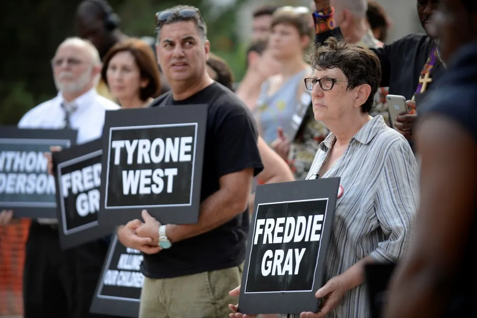 社区成员聚集在巴尔的摩市政厅外举行集会,以纪念弗雷迪·格雷和所有警察暴力的受害者。路透社/布莱恩·伍尔斯顿7月27日,前圣路易斯市警察托马斯·A·卡罗尔因在迈克尔·沃勒被铐住并被拘留时殴打、踢打并将枪口抵在沃勒嘴里,被判处52个月的联邦监禁。美国司法部在一份新闻稿中描述了这一罪行: