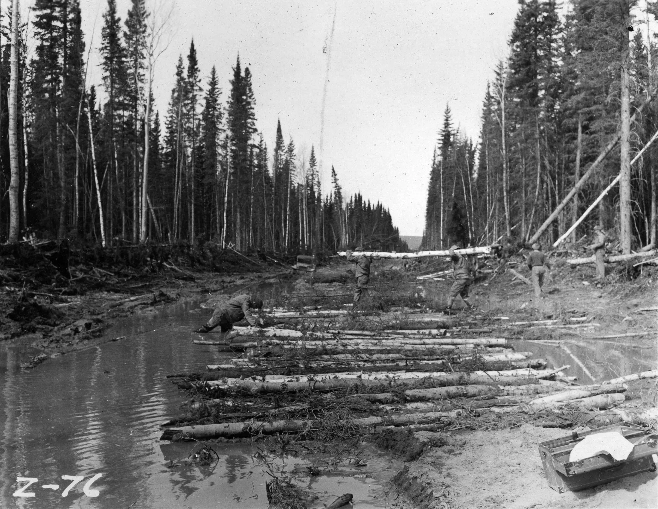 341工程团在1942年左右的阿拉斯加公路上工作。
