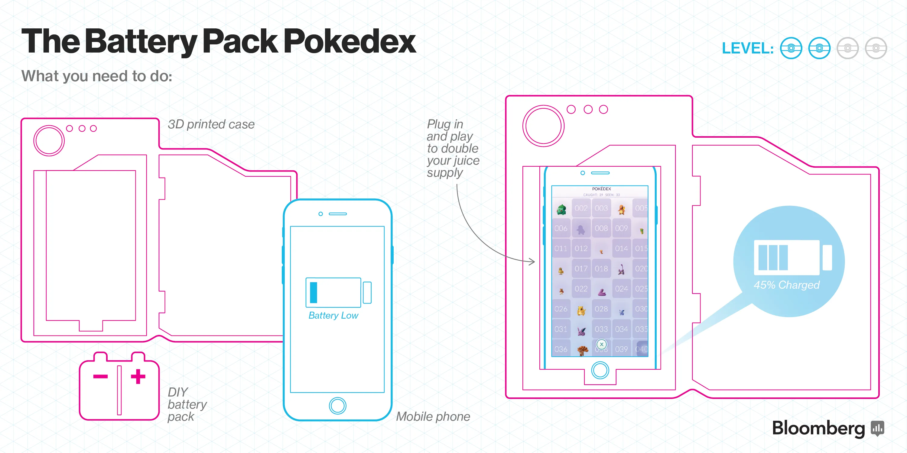 那些离开家的人很快发现,这款游戏非常耗费智能手机电池。但是,既然你可以费力地制造自己的 定制手持宝可梦百科全书,为什么还要买充电器呢?除非你已经拥有一台3D打印机,否则就需要去当地的创客空间。借用他们的烙铁,把电池连接到一些组件上。你刚刚把电量翻倍,还获得了极大的DIY声望。