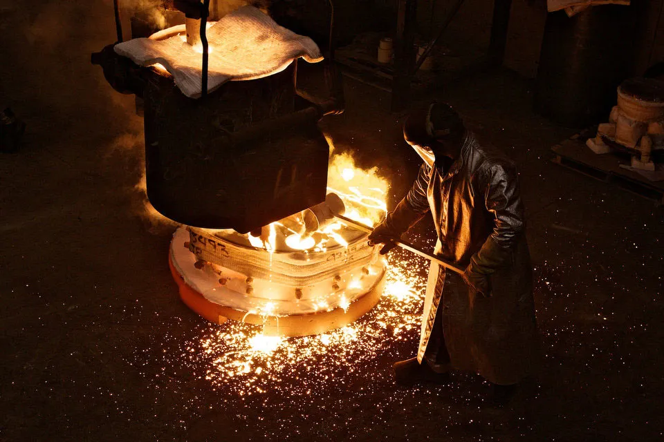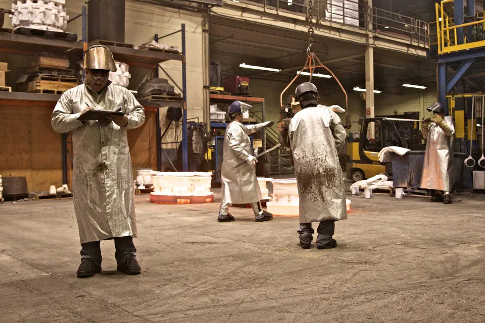 2011年10月27日,俄勒冈州波特兰的Precision Castparts铸造操作员。