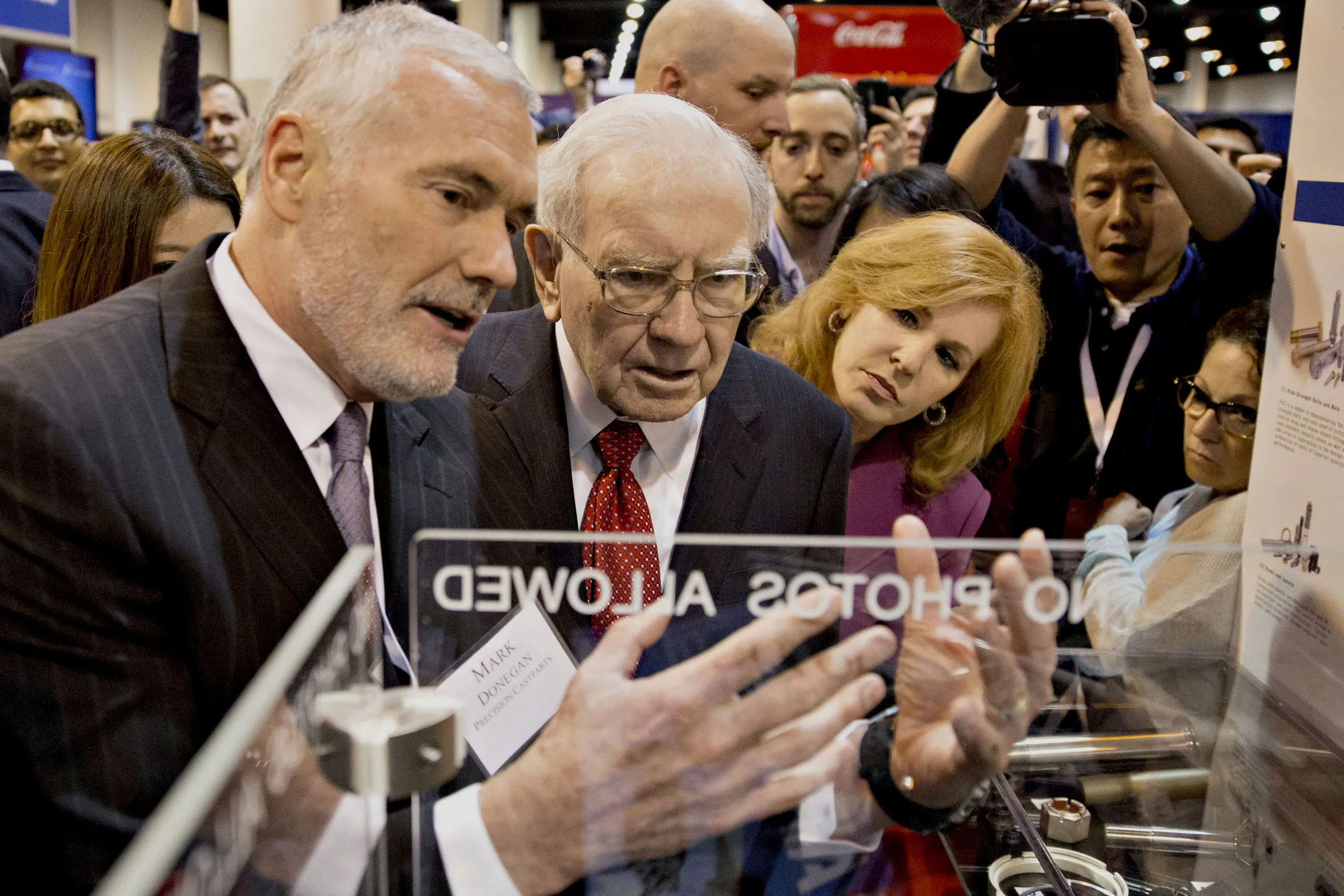 几分钟后,巴菲特转向另一个展示。人群跟随他,而多尼根则独自站在那里。