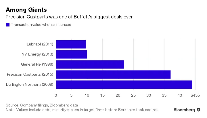 巴菲特看到了机会。他的一位副投资经理Todd Combs在2012年开始在Precision建立股份,逐渐积累了3%的持股。根据一份 代理文件,2015年7月1日,Donegan在奥马哈停留,进行与Precision最大股东的会面。巴菲特参加了会议的后半部分。第二天,Combs打电话给Donegan,表示巴菲特有兴趣收购Precision。两位首席执行官在爱达荷州的阳光谷会面,之后又在奥马哈见面三次。到去年8月初,他们达成了协议。