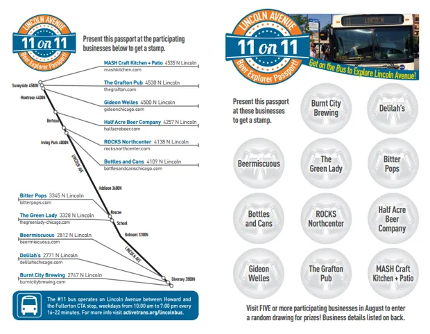 在整个八月,勇敢的北区居民可以在新恢复的路线长度上进行啤酒巡游,作为11 for 11 啤酒探险护照计划的一部分,从至少五家不同的林肯大道酒吧收集印章。湖景商会的执行董事李·克兰德尔表示,他预计人们会花整个月的时间来完成护照,“并在一次中消费适量的啤酒。”这更像是一次有针对性的探索,而不是酒吧爬行,沿着#11线路探索不同的地点,并增加了当地商家为护照计划获胜者提供的奖品的诱惑。
