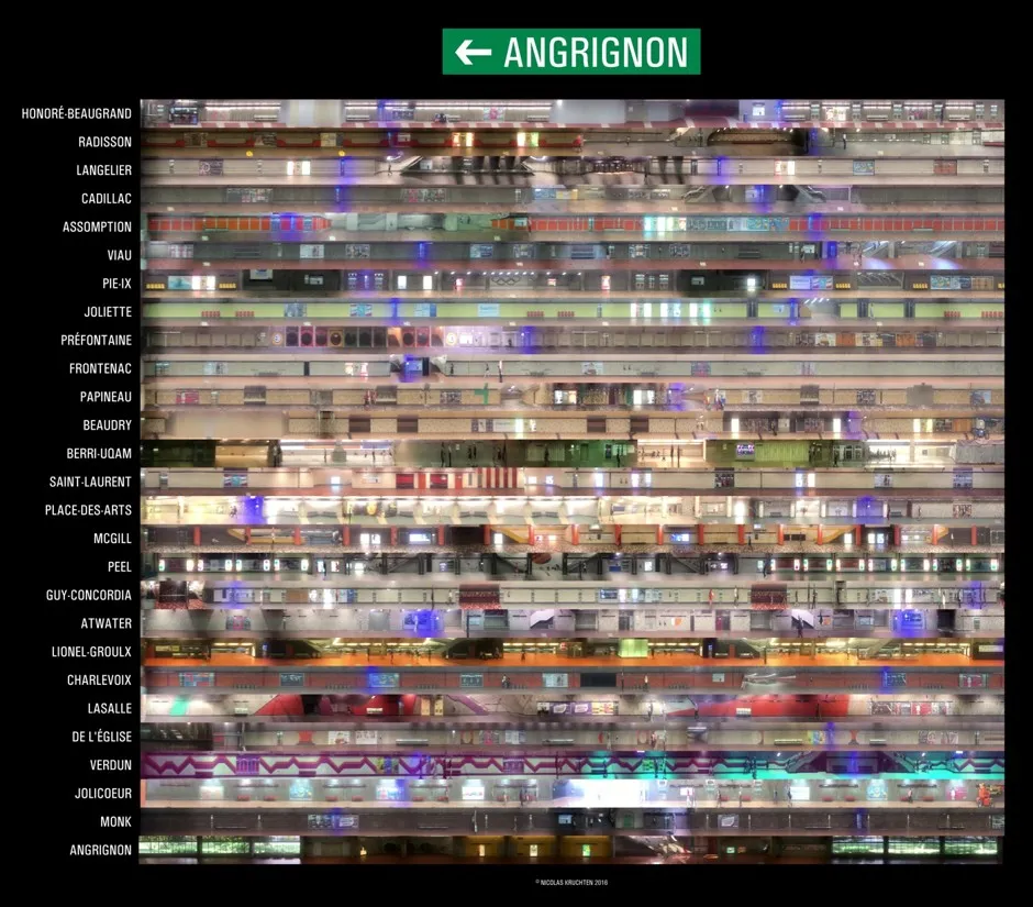 现在,一位聪明的软件工程师为解决这个问题做了一些节省时间的工作,至少是针对一个城市的地铁。尼古拉斯·克鲁赫滕拍摄并对齐了蒙特利尔绿色线西行侧每个车站的全景视图,以便乘客可以更容易地找到等待火车的完美位置,相对于他们想要到达的地方。通过参考一个站台上的特定特征(例如援助电话或广告)与另一个站台上所需出口的对齐,乘客可以最大化效率,避免在到达目的地时的困惑。