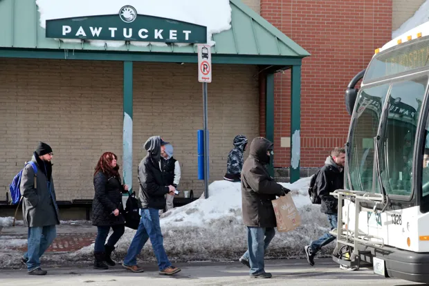 乘客在2015年2月24日于罗德岛帕特基特登上前往普罗维登斯的巴士。美联社照片/查尔斯·克鲁帕“布鲁金斯研究帮助开启了对话,”帕特基特基金会执行董事简·布罗迪说。她开始与雷蒙多和州交通部会面。3月,托邦代表提出了一项法案,以拨款1000万美元用于火车站。