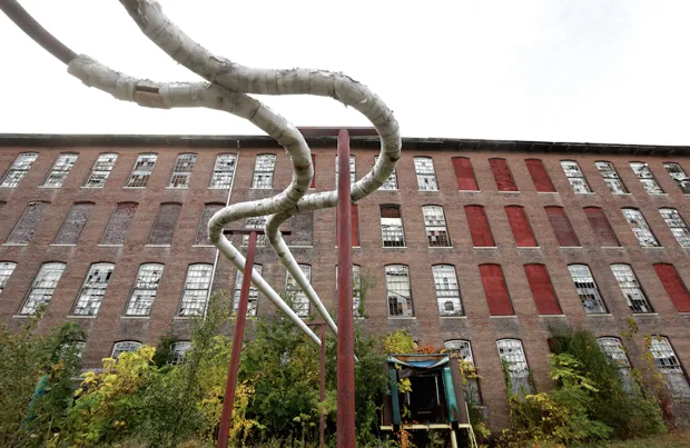 光管从位于罗德岛帕特基特的康纳特线-科茨与克拉克工厂综合体的一座废弃建筑中突出。美联社照片/史蒂文·塞恩官员们对火车站能够释放该地区的发展潜力感到乐观。“那里有20英亩的开发用地,”格雷比恩说。“这是下一阶段。”