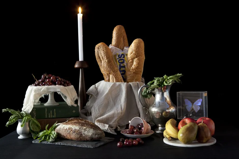 面包是最被浪费的食物之一。上面图片中的所有食物都是从布鲁克林的Cobble Hill市场和面包店外的路边垃圾中救回来的。阿丽莎·埃利亚扎罗夫回到她的工作室,埃利亚扎罗夫以一种参考欧洲画家几个世纪以来的静物画的方式排列了这些食物。“在这些画作中,对食物的欣赏和尊重程度如此之高,以至于它被提升为艺术,”她说。埃利亚扎罗夫希望对那些面临被丢弃风险的食物做同样的事情,这些食物通常因为有点不规则、受损或凹陷而 被忽视。