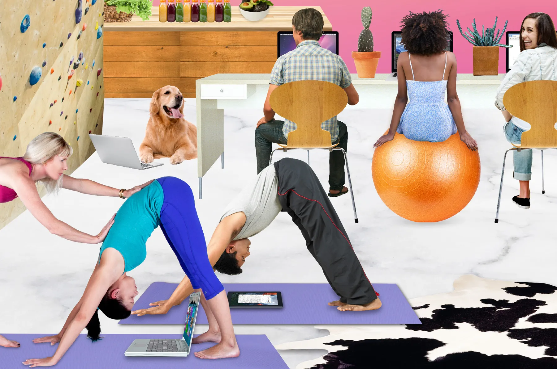 照片插图由731提供;来源:Getty Images (32)在最近的一个星期一下午,大约1点钟,我从我的桌子走到更衣室,换上紧身裤和防汗背心,拿起瑜伽垫,开始在一个有三位女性的工作室里冥想。“忘掉截止日期,”教练告诉我们。“忘掉迫在眉睫的约会和任务。”我在努力,但这很难:我的桌子离得太近,如果我的手机响了,我能听见。经过一个小时的拉伸、摆姿势,以及不忘记截止日期后,我又穿上工作服;不久我又开始在笔记本电脑上敲打起来。这是位于曼哈顿市中心的一个新共享办公空间Primary的一个正常下午。每月300美元,我可以在中午的vinyasa流瑜伽课后,离我管理收件箱的地方仅几步之遥,喝一杯10美元的绿色果汁。