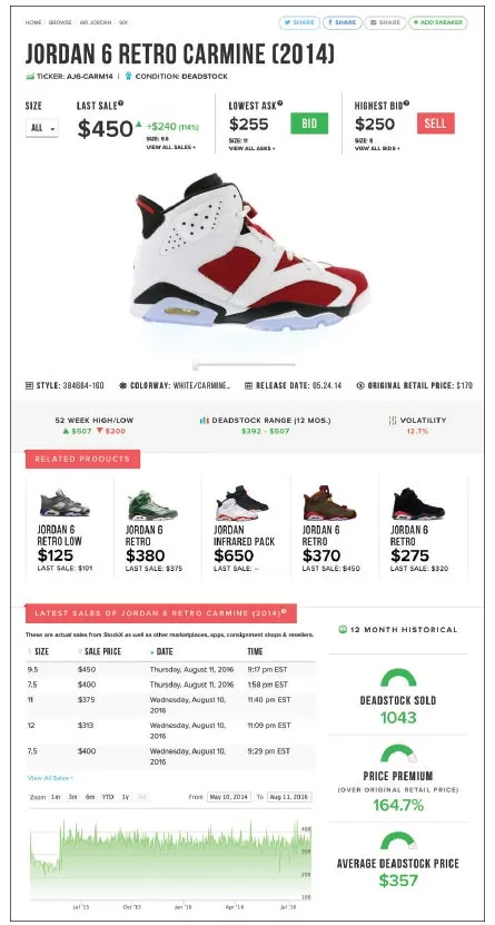 StockX网站提供了一个可搜索的数据库,包含约5000种运动鞋,每种鞋子都有一个旋转360度的照片和从鞋子发布以来的定价图形和数据,包括网站及其他地方的最近购买价格、52周的最高和最低价格,以及某些尺码是否更贵。该交易所允许买卖双方匿名交易:当一个鞋迷点击“购买”时,卖方将鞋子发送到StockX位于底特律的总部;内部专家验证它们是真正的和未使用的;然后StockX将其交付,向卖方收取10%的交易费用。卖方只需发布他们的价格——没有个人资料,没有照片。