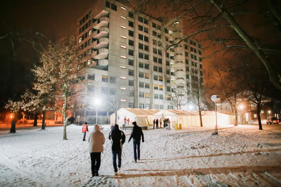 在柏林,移民的住房流程大致如下:首先,新来者在州卫生和社会事务办公室(通常称为LaGeSo)注册并声明他们寻求庇护的意图。从那里,他们被分配到大型接待中心,或称为lager,这些中心一次可以容纳数百到数千名寻求庇护者。主要的lager位于前坦佩尔霍夫机场的一个机库内。(由于中央LaGeSo地点的记录延误,该办公室最近宣布将在坦佩尔霍夫机场现场开设第二个地点。)