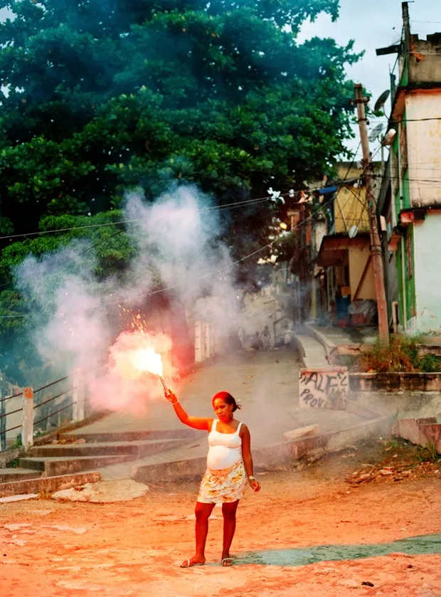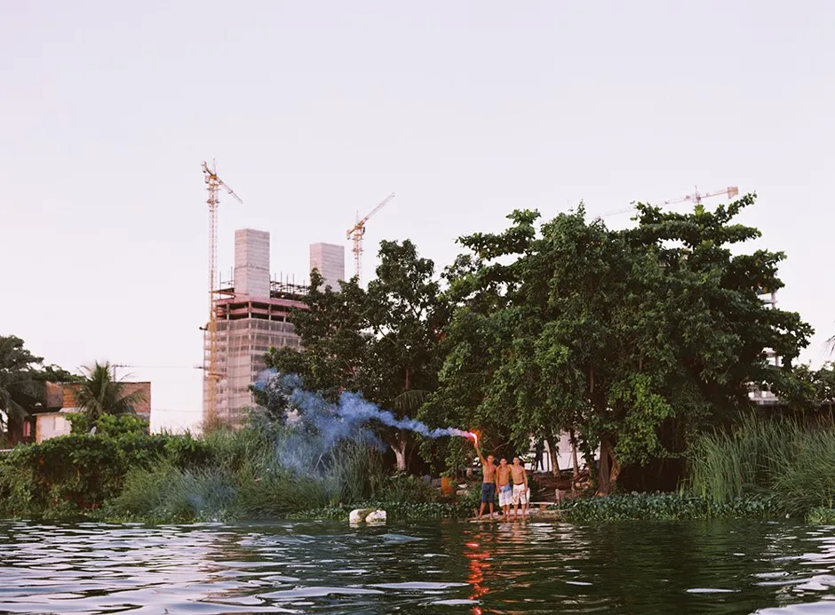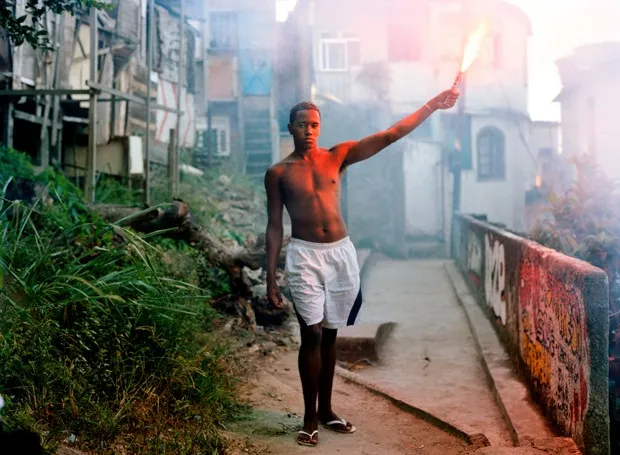 在维拉·奥托德罗莫的三个兄弟,俯瞰附近奥林匹克公园的建设。马克·奥伦-莱克莱夫在里约的雅卡雷帕瓜泻湖边,三个兄弟站在一起,手臂互相环绕。一个人高举紧急信号弹,像火炬一样。他直视前方,火焰燃烧到尽头,整整需要一分钟。