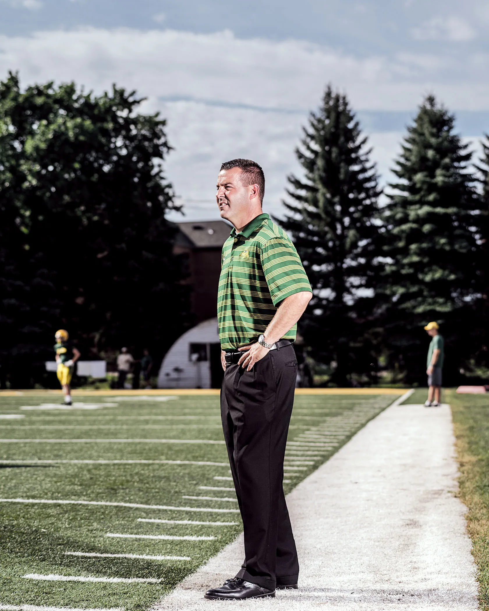 照片:本杰明·拉斯穆森为《彭博商业周刊》拍摄对于拉尔森来说,这更复杂。这个来自纽约的移民在2014年与妻子和孩子来到法argo,之前他在纽约的石溪大学担任体育部门的首席财务官。他曾为海狼队打外接手,并在学校的橄榄球队从二级升到一级时在体育部门工作。他说他每周都会被问到跳级的事——由球迷、媒体甚至管理人员提问。当一支球队在过去三年中有14场比赛以超过30分的优势获胜时,这个问题就显得很自然。“两方面的论点都很容易,”拉尔森说。“这不能是情感上的决定。必须是预算上的决定。”