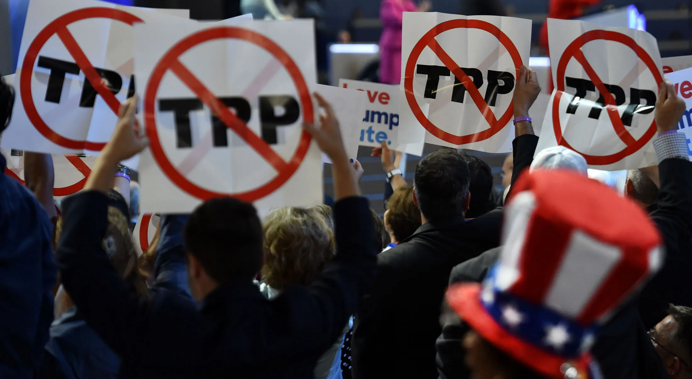 代表们在7月25日的民主党全国大会上表达了他们对跨太平洋伙伴关系协议的反对。