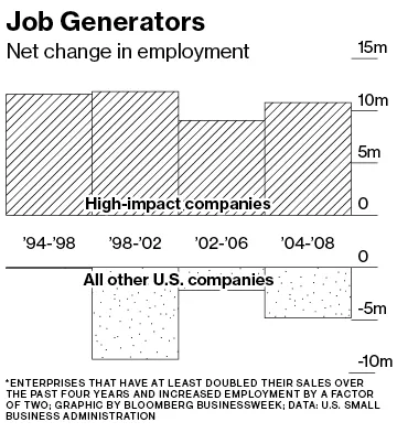 学术界和政府机构通常将像Tipton这样的企业归入一个不同称为规模扩展、高影响力公司或羚羊的类别——这些参数略有不同。经济合作与发展组织将它们定义为在达到至少10名员工后,连续三年年收入或员工人数增长超过20%的企业。根据2011年美国小企业管理局倡导办公室的一项研究,高影响力公司“被认为创造了几乎所有的净新工作”,尽管它们在美国公司中只占少数。苏格兰皇家银行2014年的一篇论文建议,将仅1%的所有拥有超过10名员工的英国企业转变为高增长模式,将在第三年末创造238,000个工作岗位和近390亿英镑(510亿美元)的额外收入。