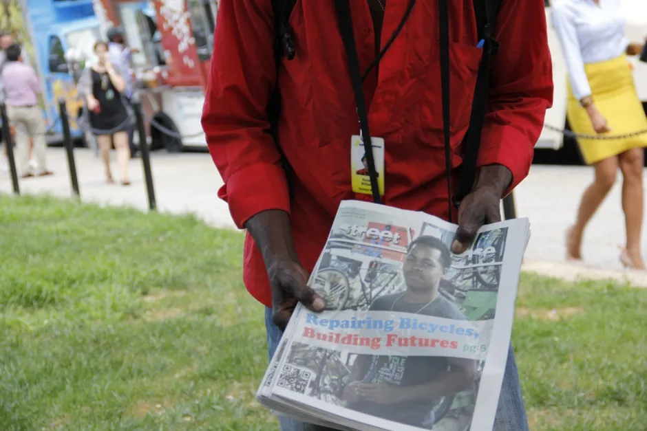 罗伯特·威廉姆斯在华盛顿特区出售《街头感觉》报纸。坦维·米斯拉/城市实验室在工作中 是一系列与维持社区运转的人们的对话。