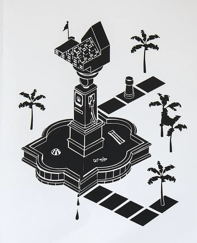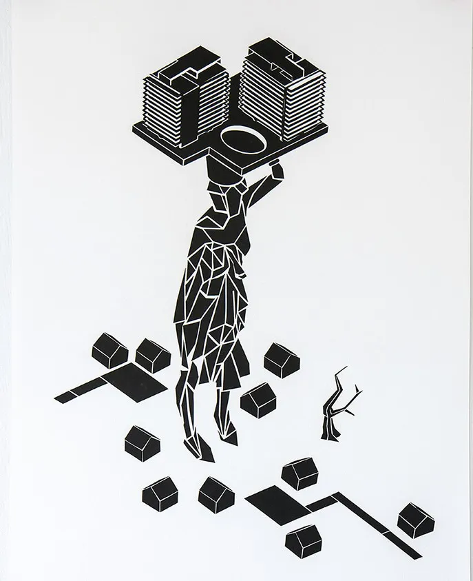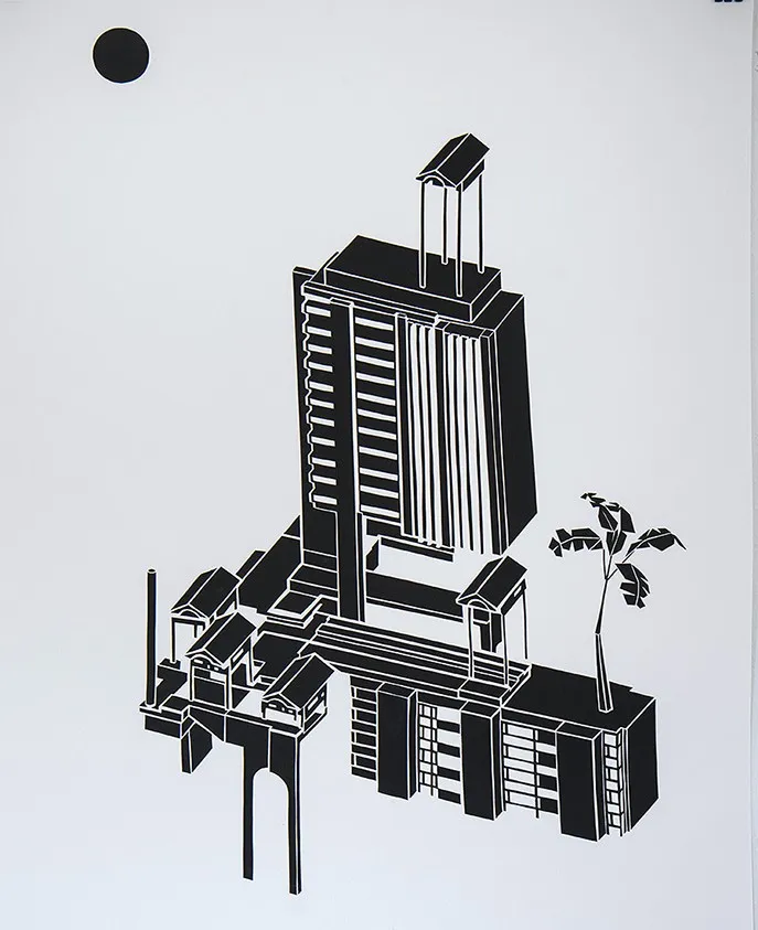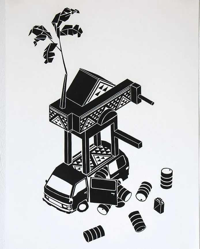 杰伊福斯六岁时离开尼日利亚前往美国,从此一直生活在纽约市。但尼日利亚的城市在他的作品中继续发挥着核心作用。通过他的这个新艺术项目,他“考虑作为侨民的一部分意味着什么,并反思一个我已经超过30年没有回去的国家,但仍然视为家的地方,”他告诉CityLab。对于这个项目,杰伊福斯有建筑背景,他设计并建造了建筑愚行——仅用于装饰的建筑,看起来似乎有其用途。他的愚行源于他现在遥远的记忆和家庭照片,以及尼日利亚新闻中的照片。最终形成的结构是现代主义的混搭,结合了尼日利亚和美国的城市标志。“这些图像结合了拉各斯、伊巴丹、伊尔-伊费和布鲁克林非正式经济的可识别图标,”他说,“从街头小贩、工业废物和发电机到奢侈房地产、移动技术和各种公共交通方式。”