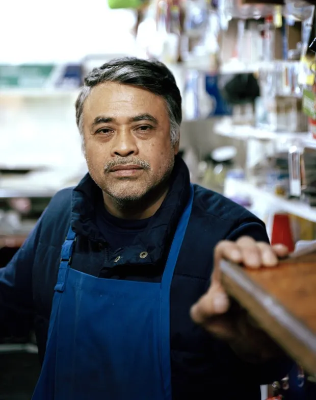 佩德罗·克鲁兹在布鲁克林日落公园的杂货店里。索非亚·穆尼奥斯·布尔洛萨第一个佩德罗出现在日落公园的一家墨西哥杂货店外。他穿着围裙匆匆跑出商店,去迎接正在拍摄他建筑外观的摄影师。“嘿!你为什么不也给我拍张照片呢?”他用西班牙语调皮地对她喊道。