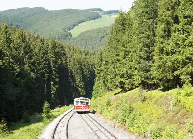 在图林根森林陡峭地形中的缆车铁路。迈克尔·潘塞/Flickr为了使轨道更加昂贵,它已被安装上(正如所有欧洲高速轨道最终都会安装的)新的 欧洲列车控制系统,该系统将欧洲不同的信号和保护系统统一为一个,并将在最终形式中消除可能对高速行驶的司机难以或无法读取的线路旁信号。安装该系统有一个重大但有争议的优势:这可能意味着列车最终可以在没有司机的情况下运行。远程无线监控,通过信标和传感器传递定位和速度信息,可能有一天会取代列车上控制员的角色,尽管在一段时间内,服务仍可能会在紧急情况下由司机操作。