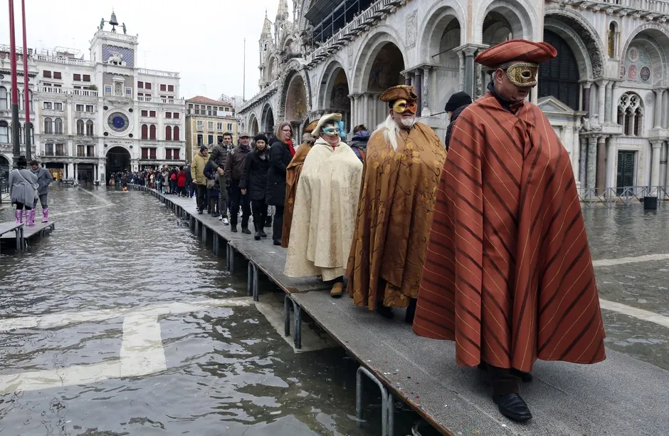 2015年2月威尼斯狂欢节期间,圣马可广场被淹。斯特法诺·雷兰迪尼/路透社满是运河的威尼斯可能因 洪水而处于危险之中,但由于 周二开始的工作,这种危险可能不会持续太久。
