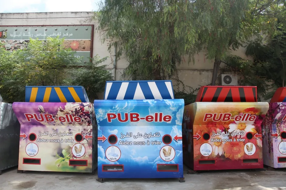 由拉萨德·祖阿里设计的垃圾和回收容器。泰莎·拉格曼拉萨德·祖阿里认为他找到了一个解决方案。在突尼斯的另一边,这位艺术家和商人展示了他最近设计的五彩缤纷的 垃圾容器。在他的容器中,有一个用于一般垃圾的空间,以及一个用于塑料的独立隔间;想要出售瓶子的人可以打开它并取出瓶子。全国范围内,已有100个容器在使用,市政当局又订购了100个。祖阿里表示,他希望政府能做更多的工作来教育居民关于垃圾处理。为了填补这一空白,员工在安装后的一周内驻扎在容器附近,提供如何正确使用它们的指导。尽管如此,容器有时还是会溢出,洒落到街道上。
