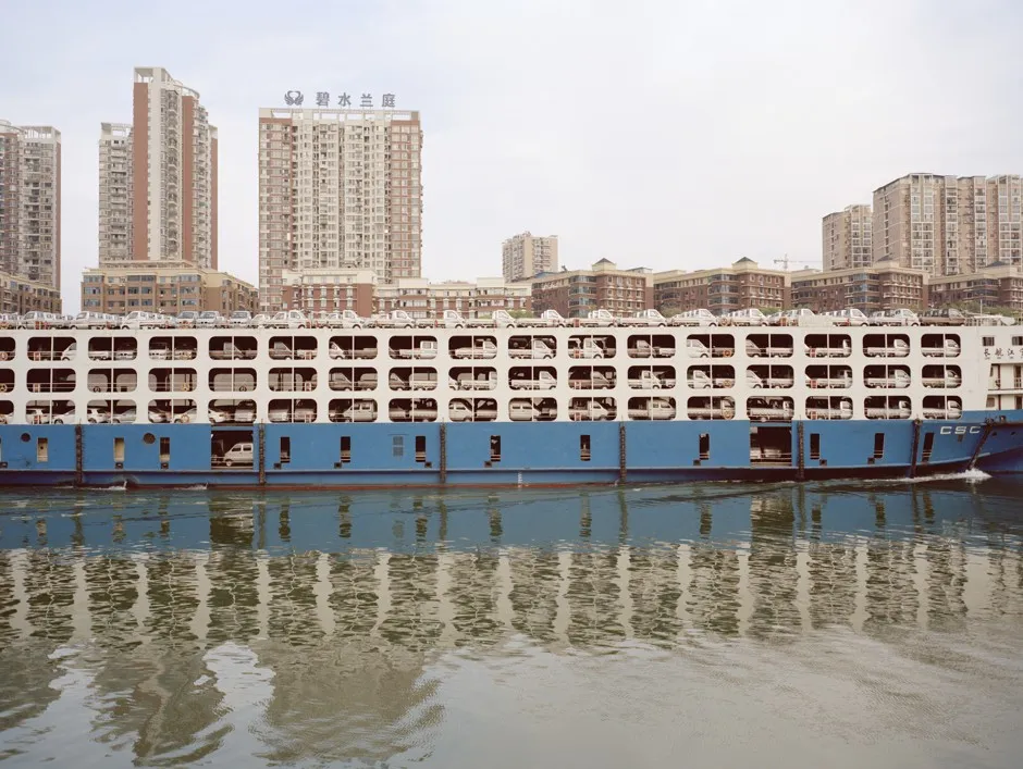 汽车运输,宜昌,湖北省,中国,2015年。© Mustafah Abdulaziz/WWF-UK在2015年,摄影师 Mustafah Abdulaziz 住在中国。两个月来,他一直在拍摄拥挤的长江,运输材料的集装箱在城市之间穿梭。一天早晨,Abdulaziz 在日出前前往洞庭湖,长江的一个洪水盆地。在所有的船只和起重机中,他注意到水面上点缀着沙子挖掘机,正在挖掘湖底以供建筑使用。