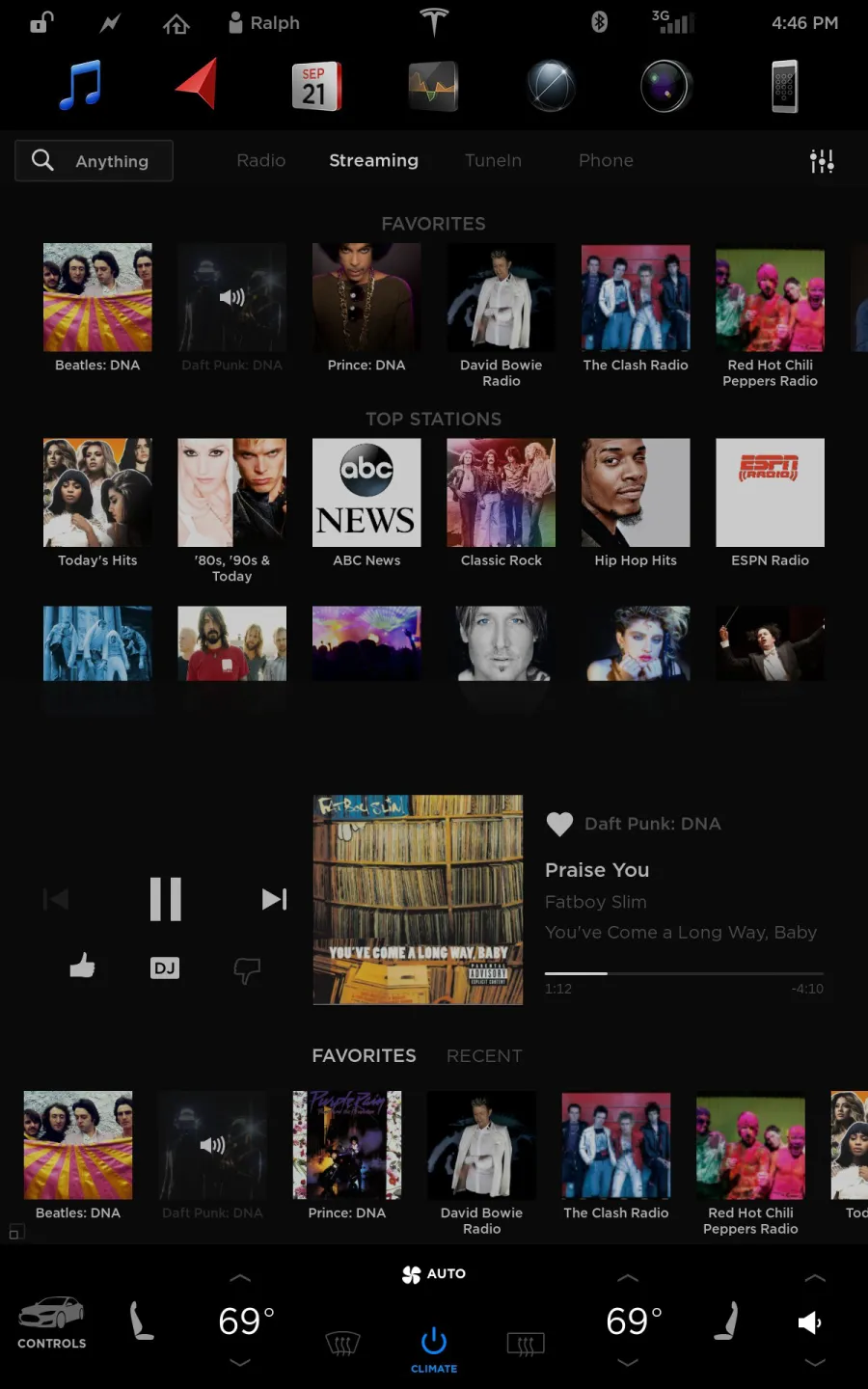 可能影响最多用户的更新是地图和媒体播放器。特斯拉8.0媒体播放器更加直观,配备强大的搜索引擎,可以搜索TuneIn和Slacker的广播电台和播客。最好的新功能是显著的“收藏夹”类别,提供一键访问来自多个互联网来源和广播电台的您最喜欢的歌曲、频道和播客,所有内容都集中在一个地方。