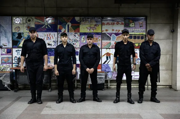 金属探测器排在入口处,警察巡逻和视频监控摄像头监视着里面的每一个动作对于普通埃及人来说的生命线。这一场景反映了地面上展开的严酷现实:埃及臭名昭著的安全国家已全面复苏,借助于2013年军方重新掌权和2011年革命(至少到目前为止)的失败。