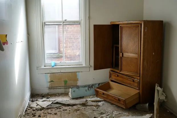 纽约特洛伊市一个被破坏的内部。朱迪·吉尔莫/呼吸的灯光弗雷林和尼尔森将为300栋废弃建筑的窗户装上LED灯,这些灯的亮度将会变化——“呼吸”——以暗示内部有人活动。该装置将在十月和十一月的每个晚上运行;每个城市将组织社区活动,如步行游,以引导公众围绕衰败问题进行对话。